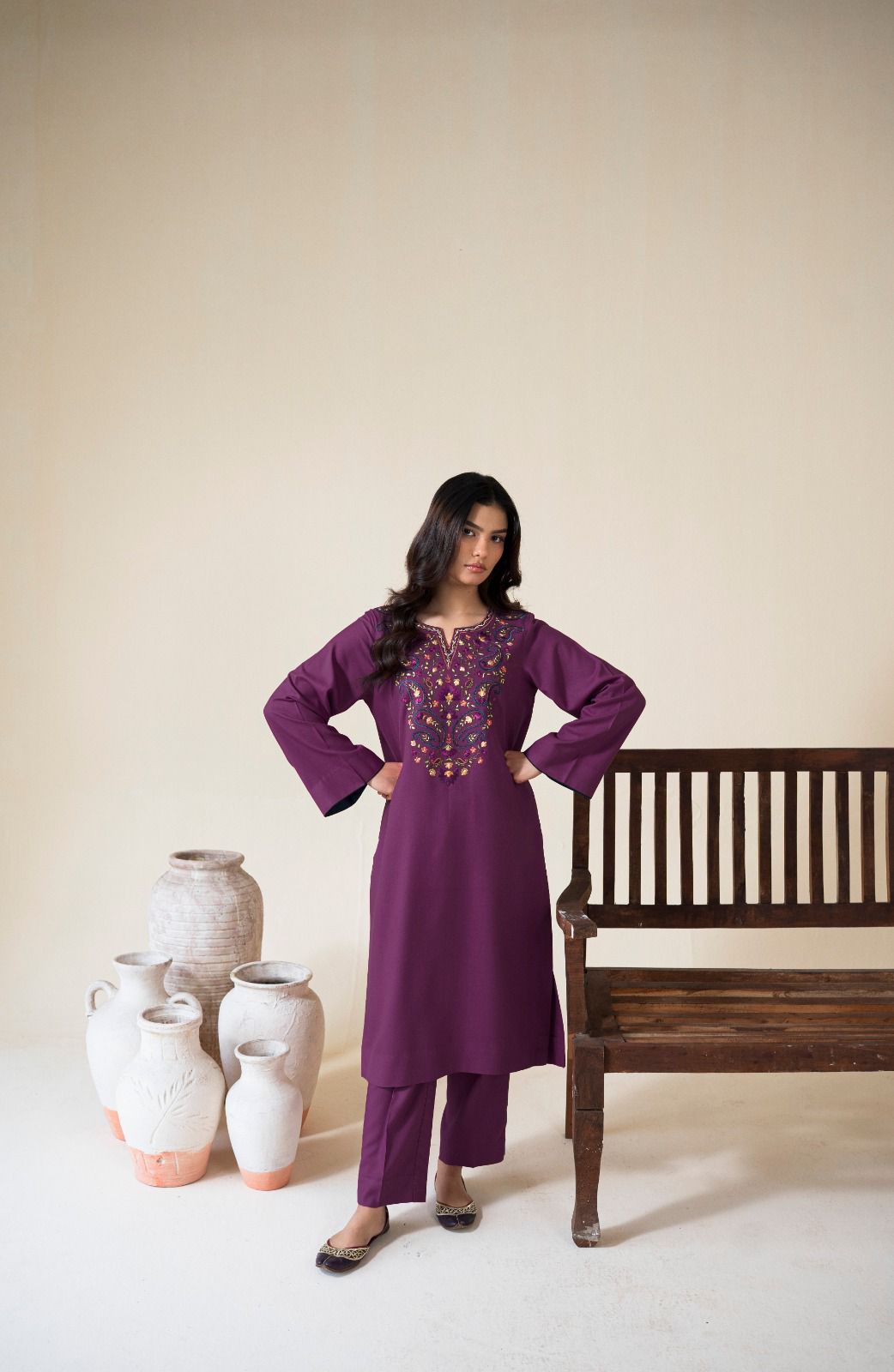 IZEL-2PC DHANAK EMBROIDRED SHIRT WITH DHANAK EMBROIDRED SLEEVES-DPC-156