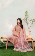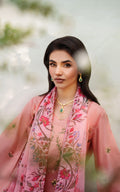 ASIFA NABEEL- 3PC DHANAK EMBROIDERED SHIRT WITH COURTRAI PRINT SHAWL AND EMB TROUSER-DPC-141
