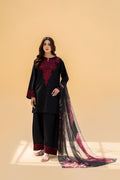 BAROQUE-3PC DHANAK EMBROIDERED SHIRT WITH COURTRAI PRINTED SHAWL AND TROUSER-DPC-182