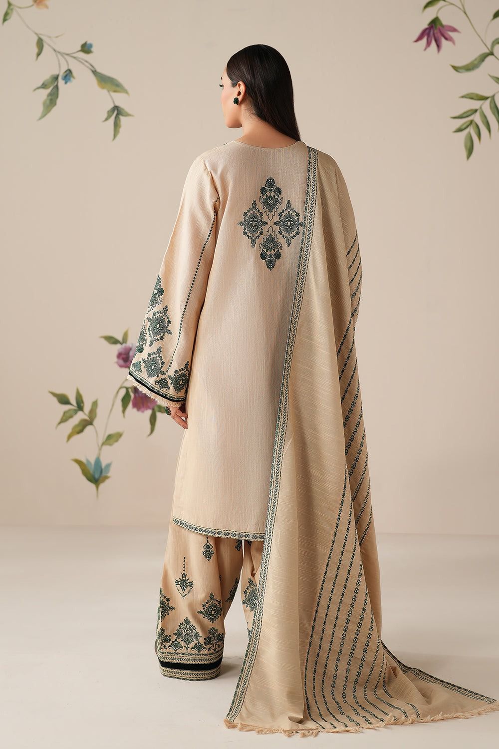 BAROQUE-3PC DHANAK EMBROIDERED SHIRT WITH DHANAK EMBROIDERED SHAWL AND EMB TROUSER-DPC-4320