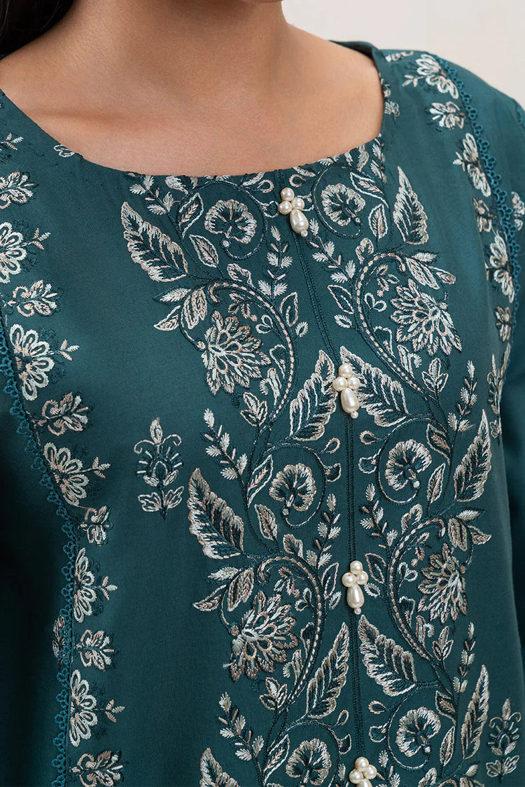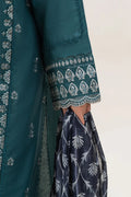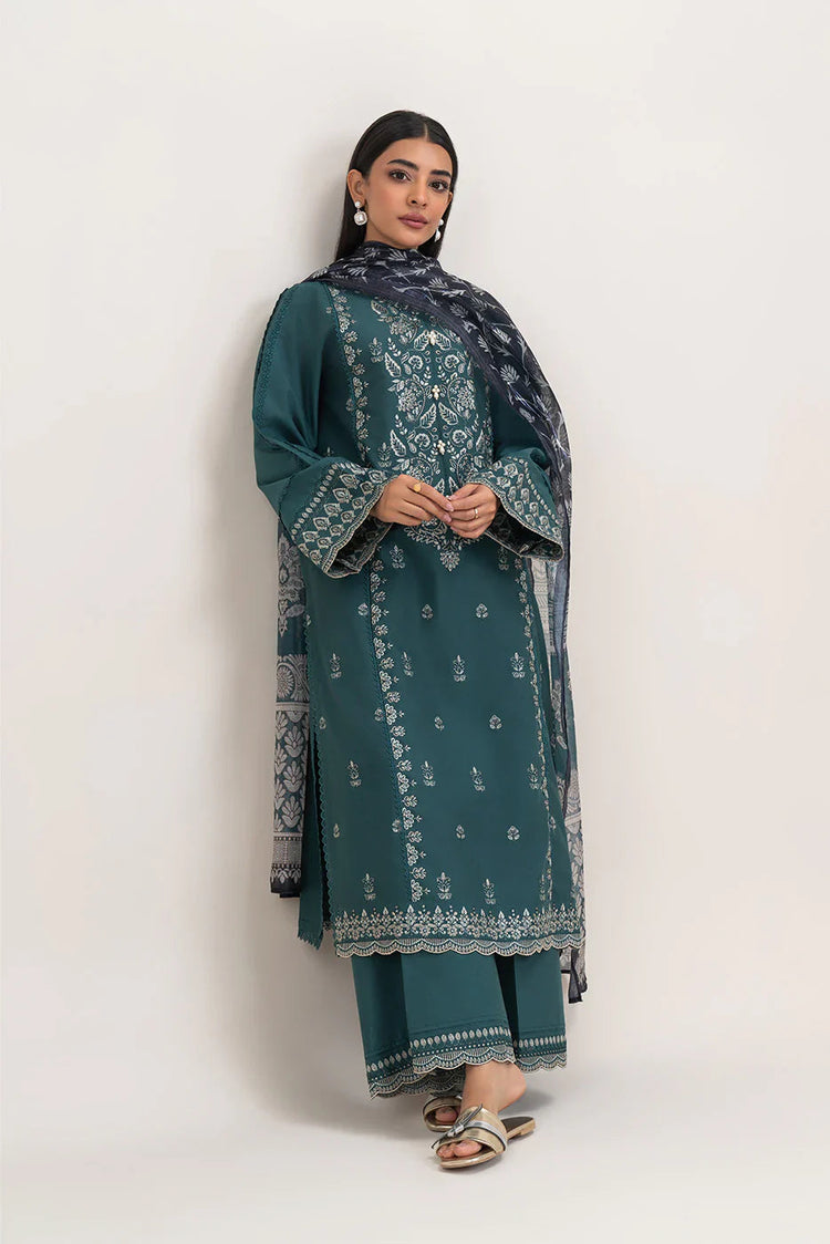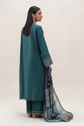 BEECHTREE-3PC DHANAK EMBROIDERED SHIRT WITH COURTRAI PRINTED SHAWL AND EMB TROUSER-DPC-4158