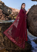 CRIMSON-3PC DHANAK EMBROIDERED SHIRT WITH DHANAK EMBROIDERED DUPATTA AND TROUSER -DPC-98