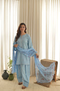 CROSS STITCH-3PC DHANAK EMBROIDERED SHIRT WITH DHANAK EMBROIDERED SHAWL AND TROUSER-DPC-4275