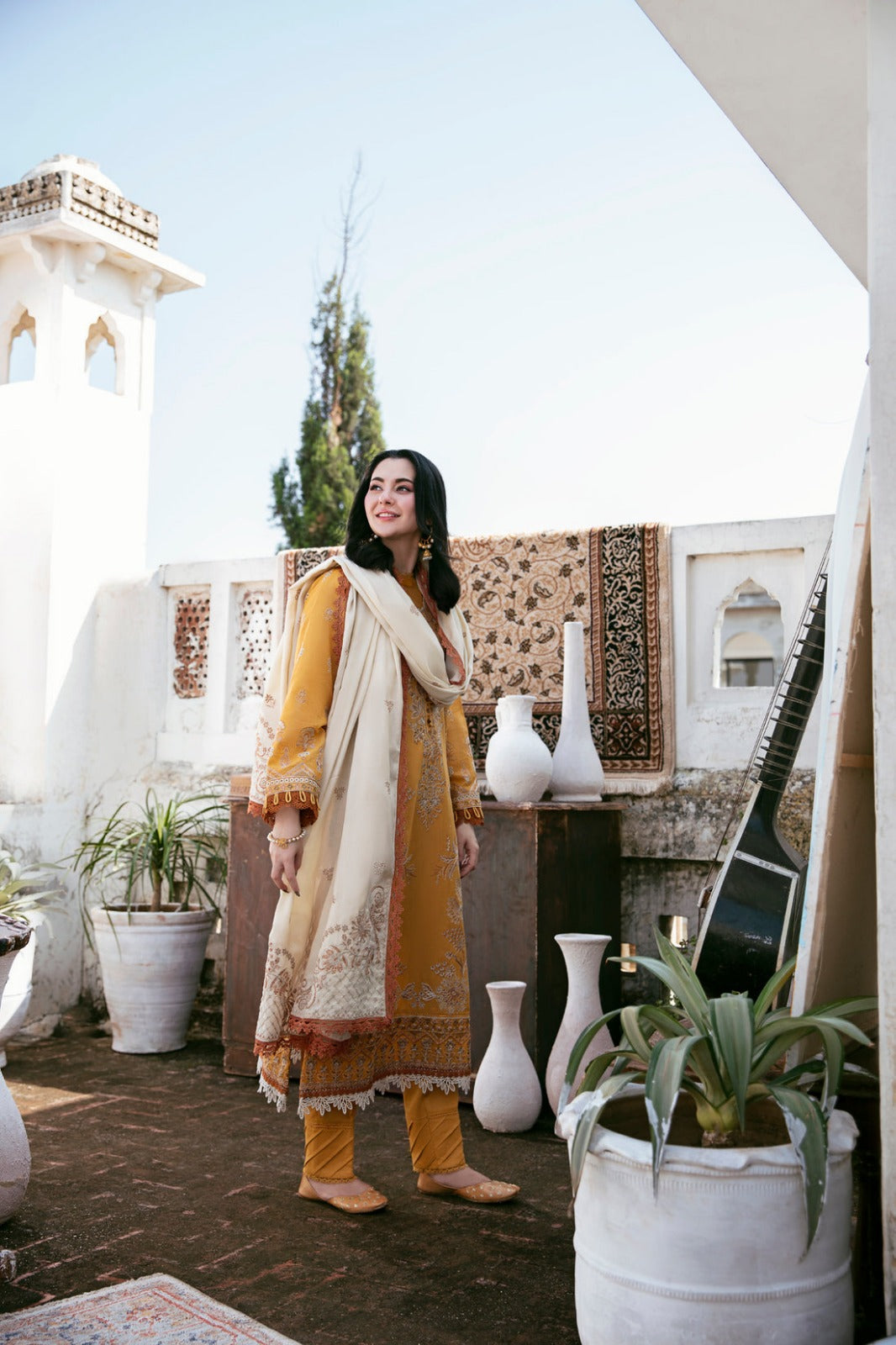 FLORENT-3PC DHANAK EMBROIDERED SHIRT WITH DHANAK EMBROIDERED SHAWL AND TROUSER DPC-117