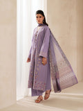 GARNET-3PC DHANAK EMBROIDERED SHIRT WITH COURTRAI PRINTED SHAWL AND TROUSER-DPC-4295