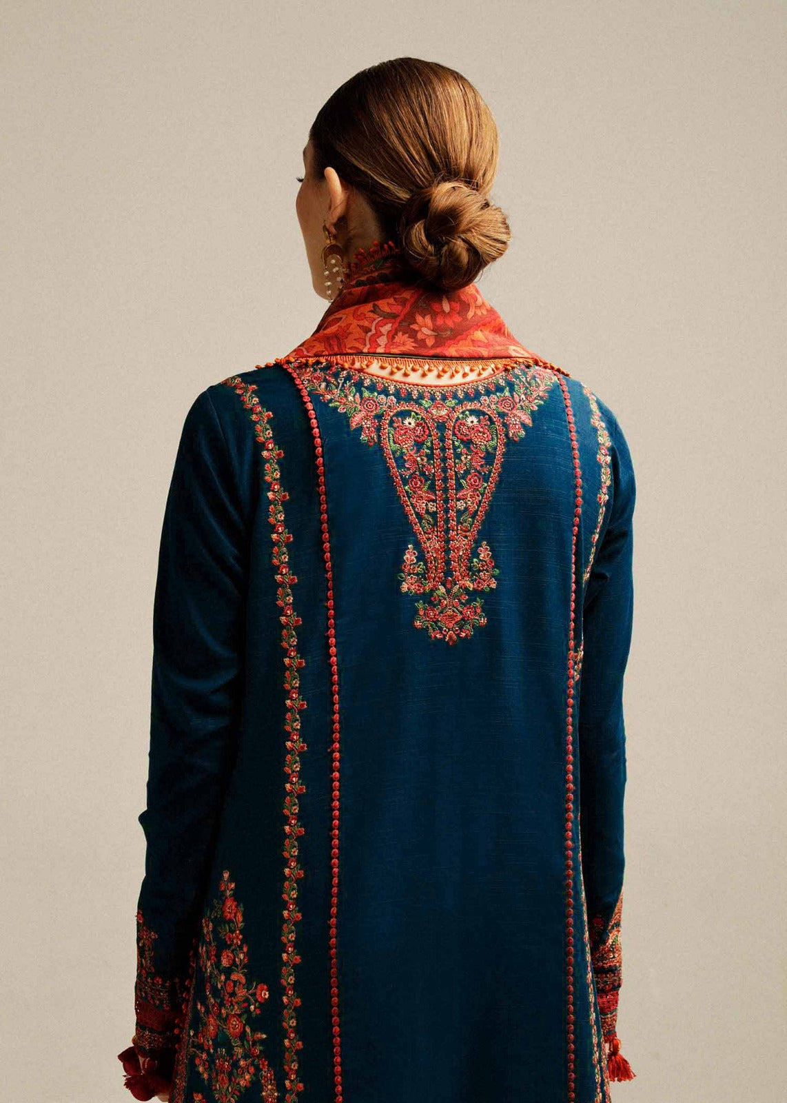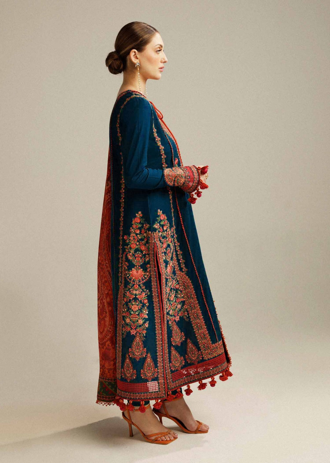 HUSSAIN REHAR-3PC DHANAK EMBROIDERED SHIRT WITH COURTRAI PRINTED SHAWL AND TROUSER-DPC- 111