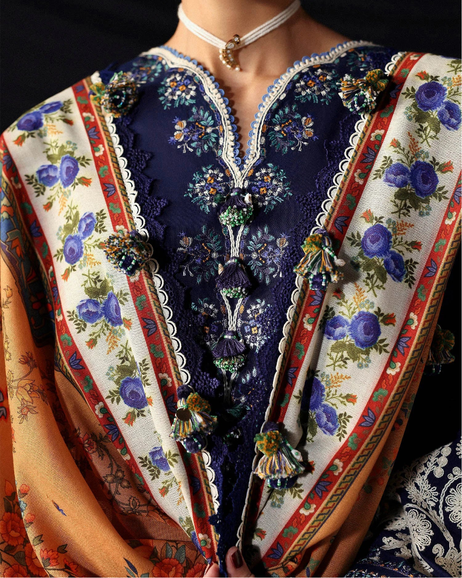 HUSSAIN REHAR-3PC LAWN EMBROIDERED SHIRT WITH DIGITAL MONAR DUPATTA AND EMB TROUSER-DPC-4713