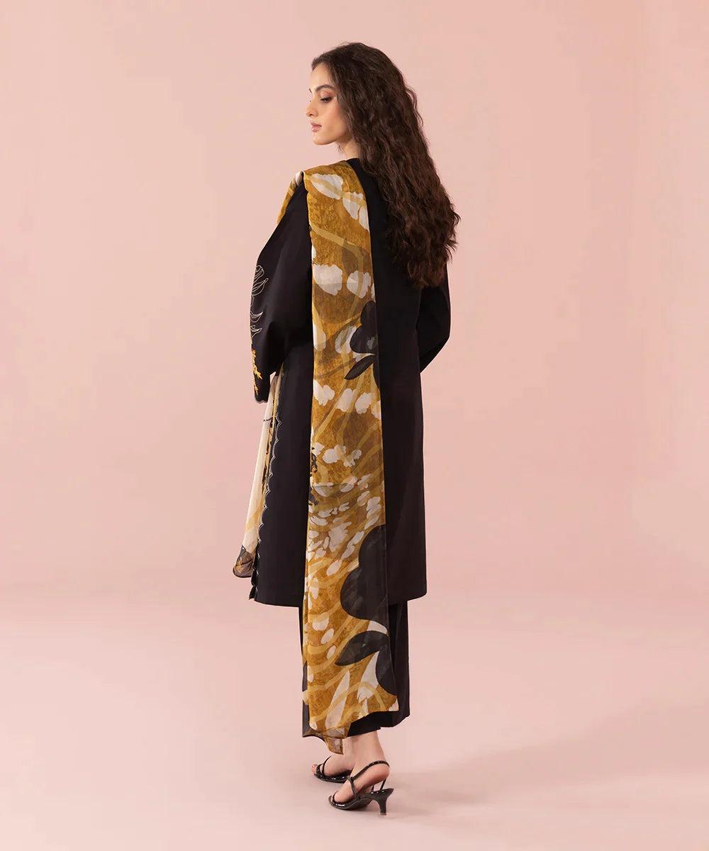 JAZMIN-3PC DHANAK EMBROIDERED SHIRT WITH COURTRAI PRINTED SHAWL AND TROUSER-DPC-107