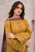 JAZMIN-3PC DHANAK EMBROIDERED SHIRT WITH COUTRAI WOOL PRINTED SHAWL & TROUSER-DPC-4028