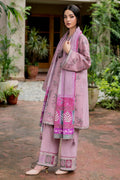 JAZMIN-3PC DHANAK EMBROIDRED SHIRT WITH WOOL PRINT SHAWL AND TROUSER-DPC-3302