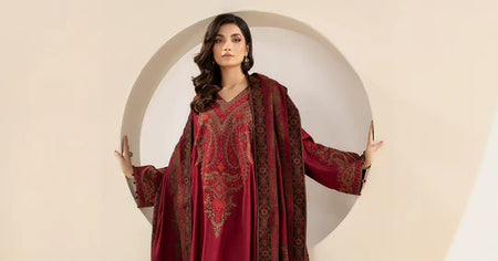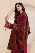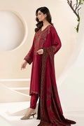 MARIA B-3PC KHADDAR EMBROIDRED SHIRT WITH WOOL PRINT SHAWL AND TROUSER-DPC-3268 B