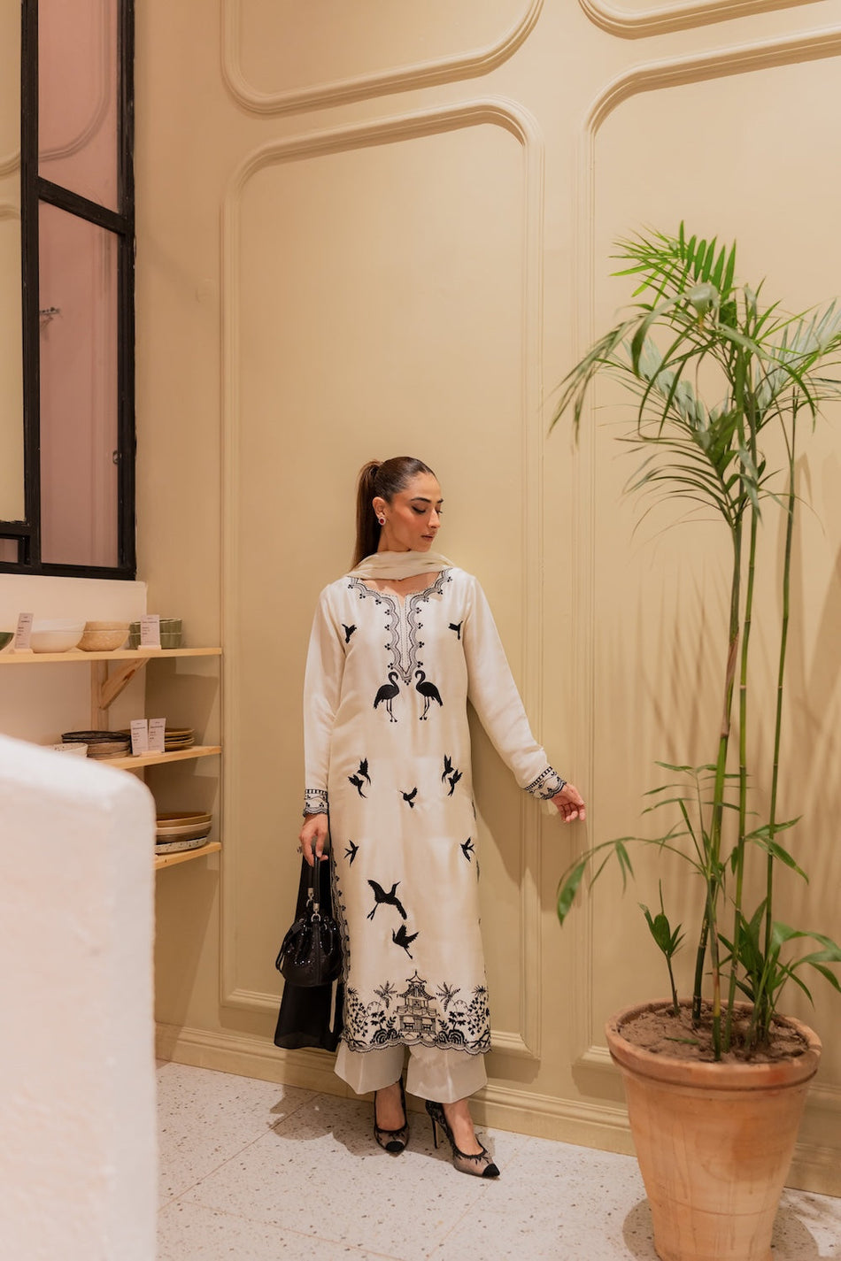 MIRANA-3PC DHANAK EMBROIDERED SHIRT WITH BAMBER TYE&DYE CHIFFON DUPATTA AND TROUSER-DPC-4249