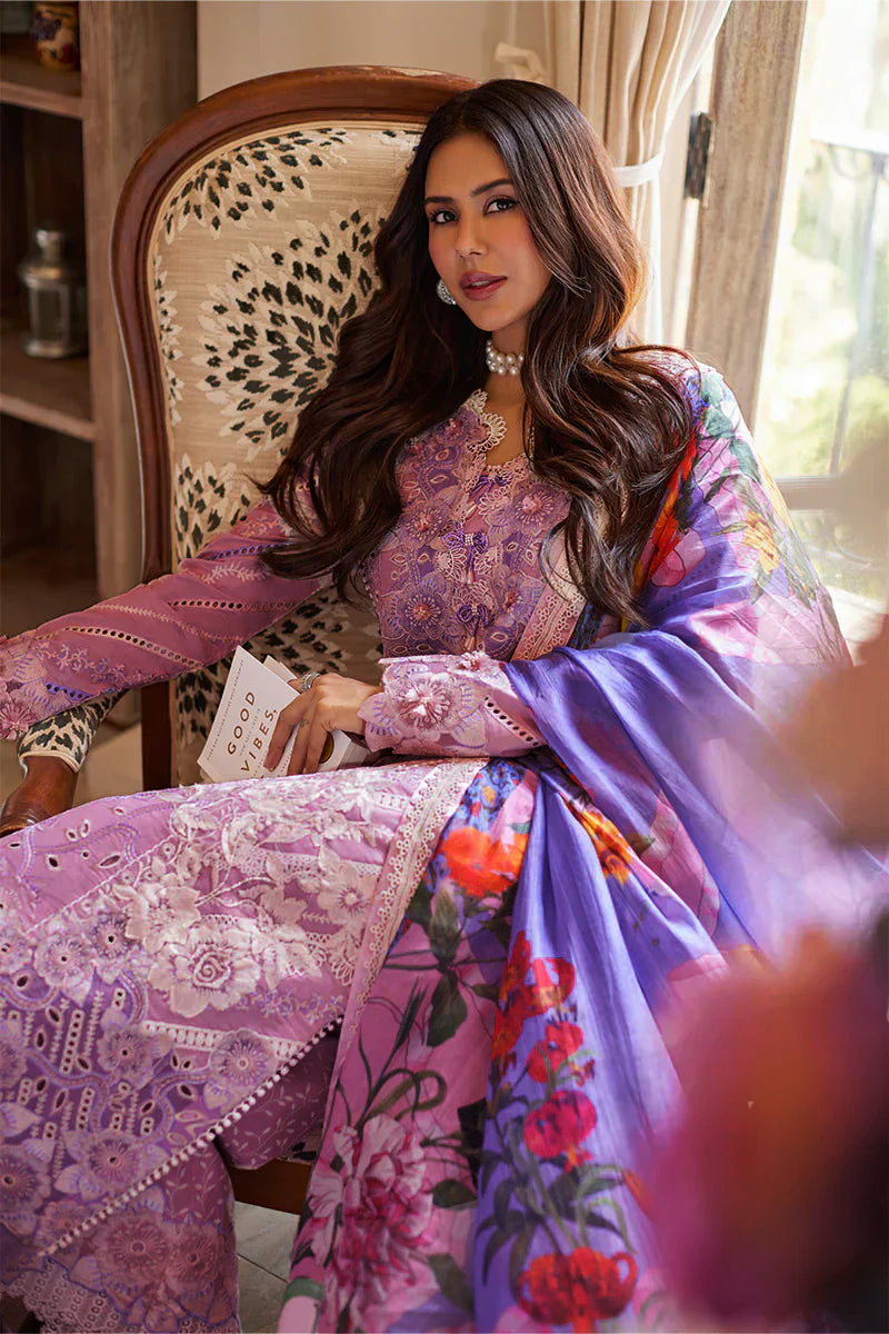 MUSHQ- 3PC LAWN EMBROIDERED SHIRT WITH PRINTED CHIFFON DUPATTA AND TROUSER-DPC-3993