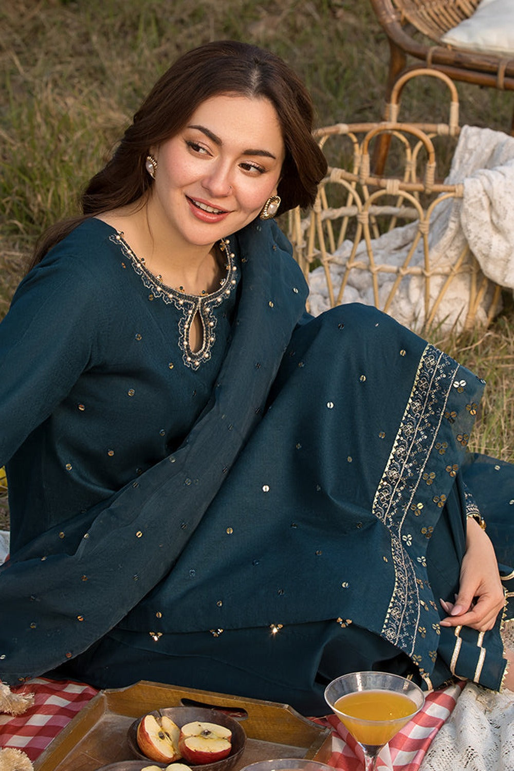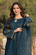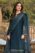 QALAMQAR-3PC DHANAK EMBROIDERED SHIRT WITH ORGANZA EMBROIDERED DUPATTA AND EMB TROUSER-DPC-20