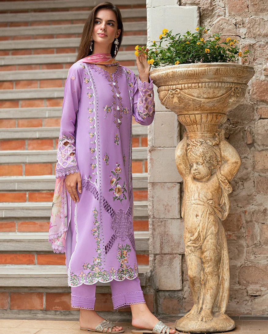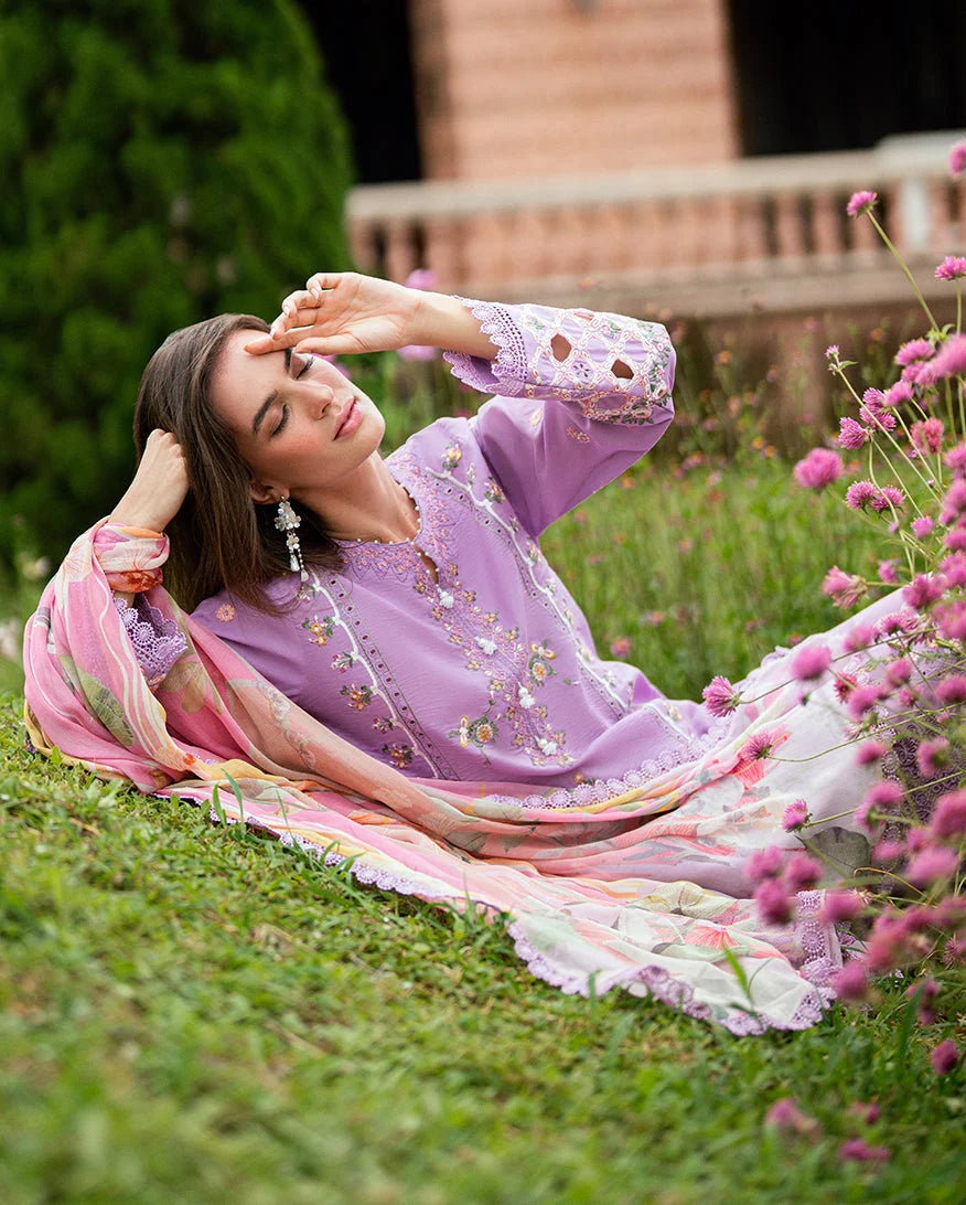 ROHENAZ- 3PC LAWN EMBROIDERED SHIRT WITH PRINTED CHIFFON DUPATTA AND TROUSER-DPC-3379