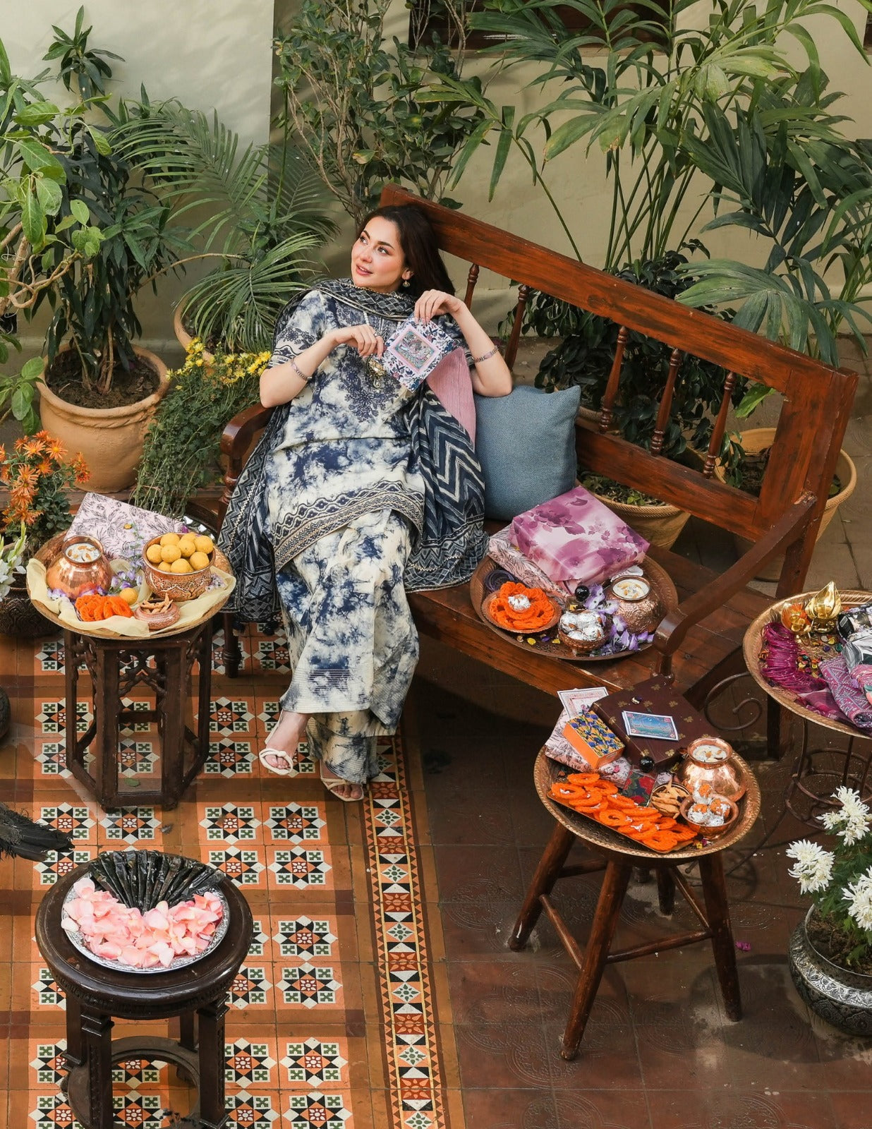 SAPPHIRE-3PC KHADDAR PRINTED EMB SHIRT WITH KHADDAR PRINT DUPATTA AND PRINT TROUSER-DPC-1001