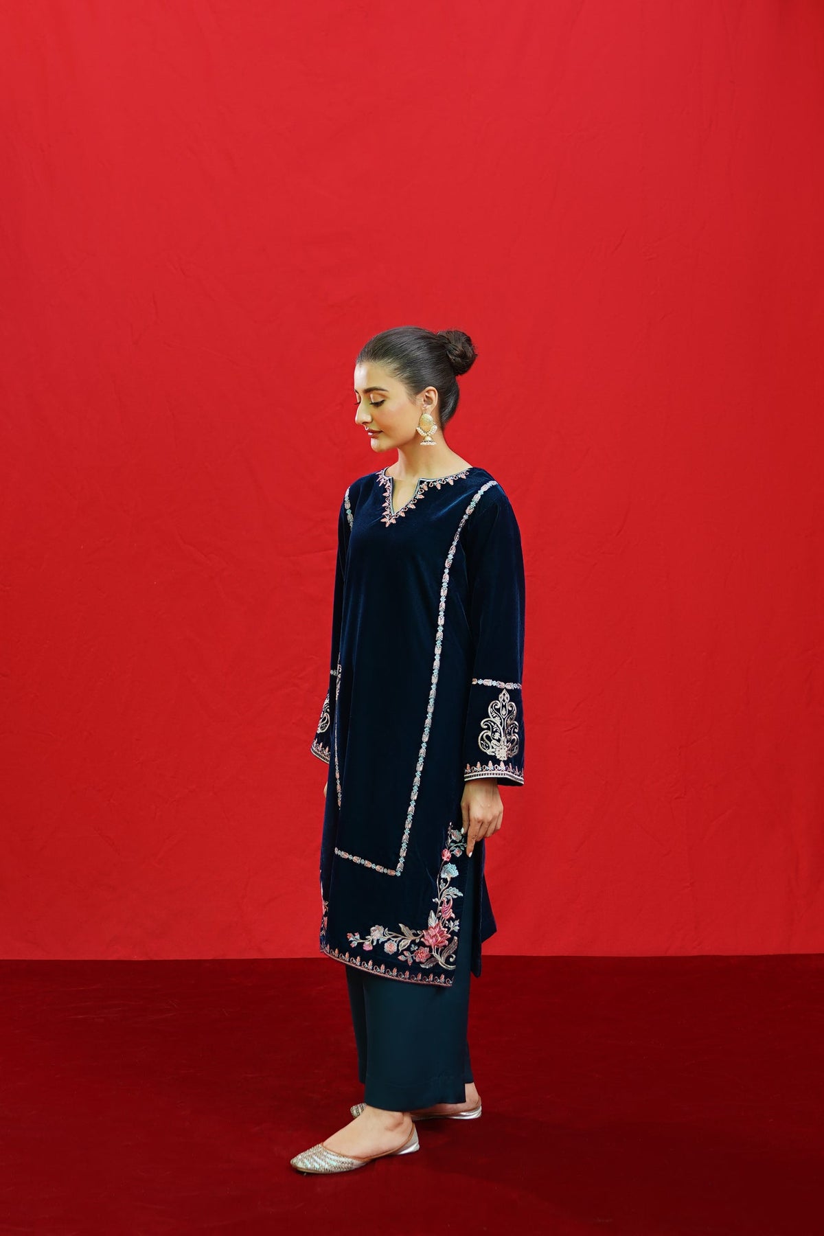 URGE -2PC Velvet Heavy Embroidered Shirt With Velvet Embroidered Sleeves-DPC-D23