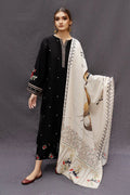 URGE-3PC DHANAK EMBROIDERED SHIRT WITH COUTRAI PRINTED SHAWL AND EMB TROUSER-DPC-4073