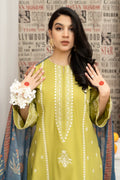 URGE-3PC DHANAK EMBROIDERED SHIRT WITH COUTRAI WOOL PRINT SHAWL AND EMB TROUSER-DPC-4013