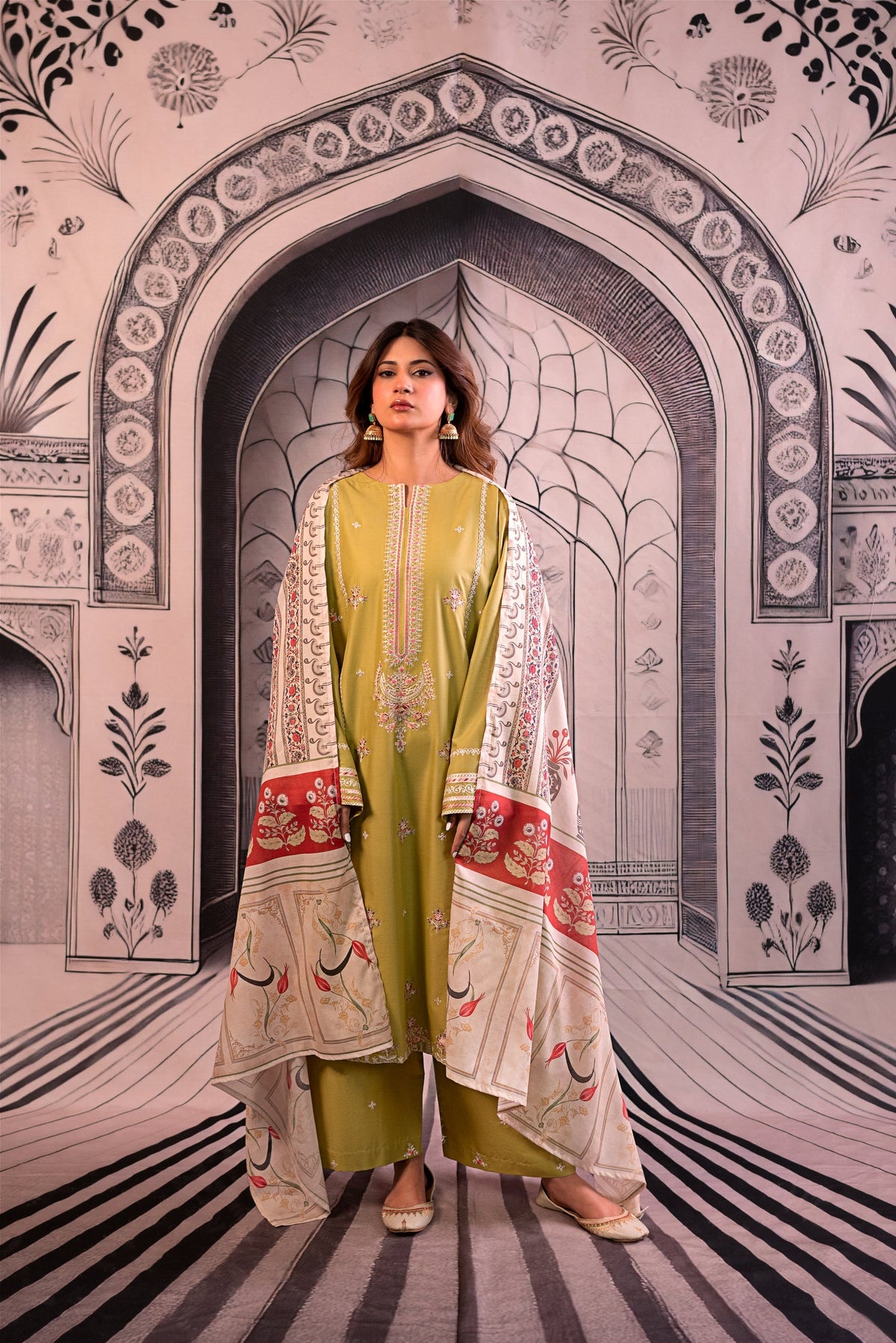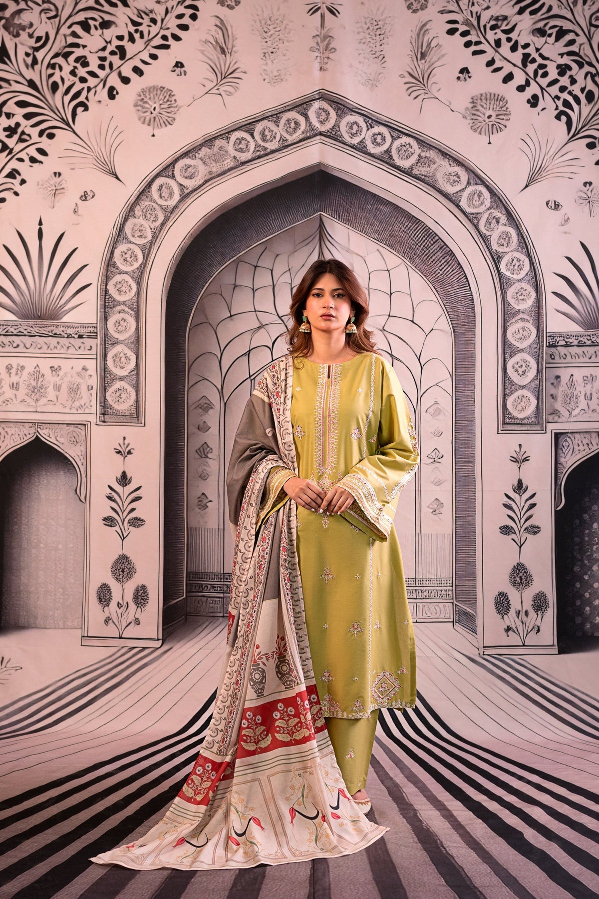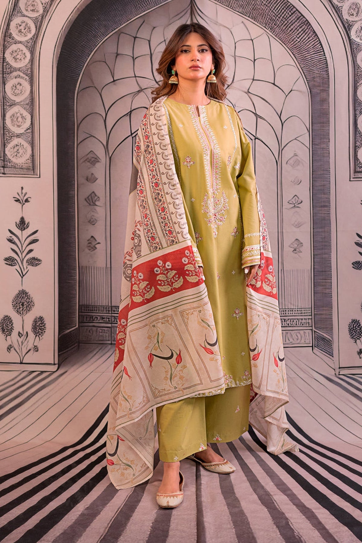 URGE - 3PC LAWN EMBROIDERED SHIRT WITH MONARK PRINTED DUPATTA AND EMB TROUSER DPC-3788