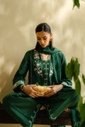ZAHRA SHAHJAHAN-3PC DHANAK EMBROIDERED SHIRT WITH CHIFFON EMBROIDRED DUPATTA AND TROUSER-DPC-3267