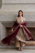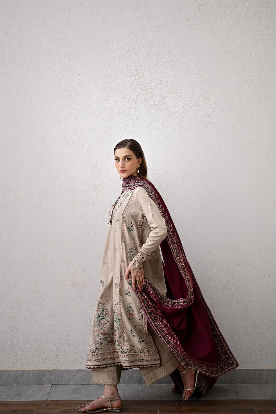 ZAIB-3PC DHANAK EMBROIDERED SHIRT WITH DHANAK EMBROIDERED SHAWL AND TROUSER-DPC-4345